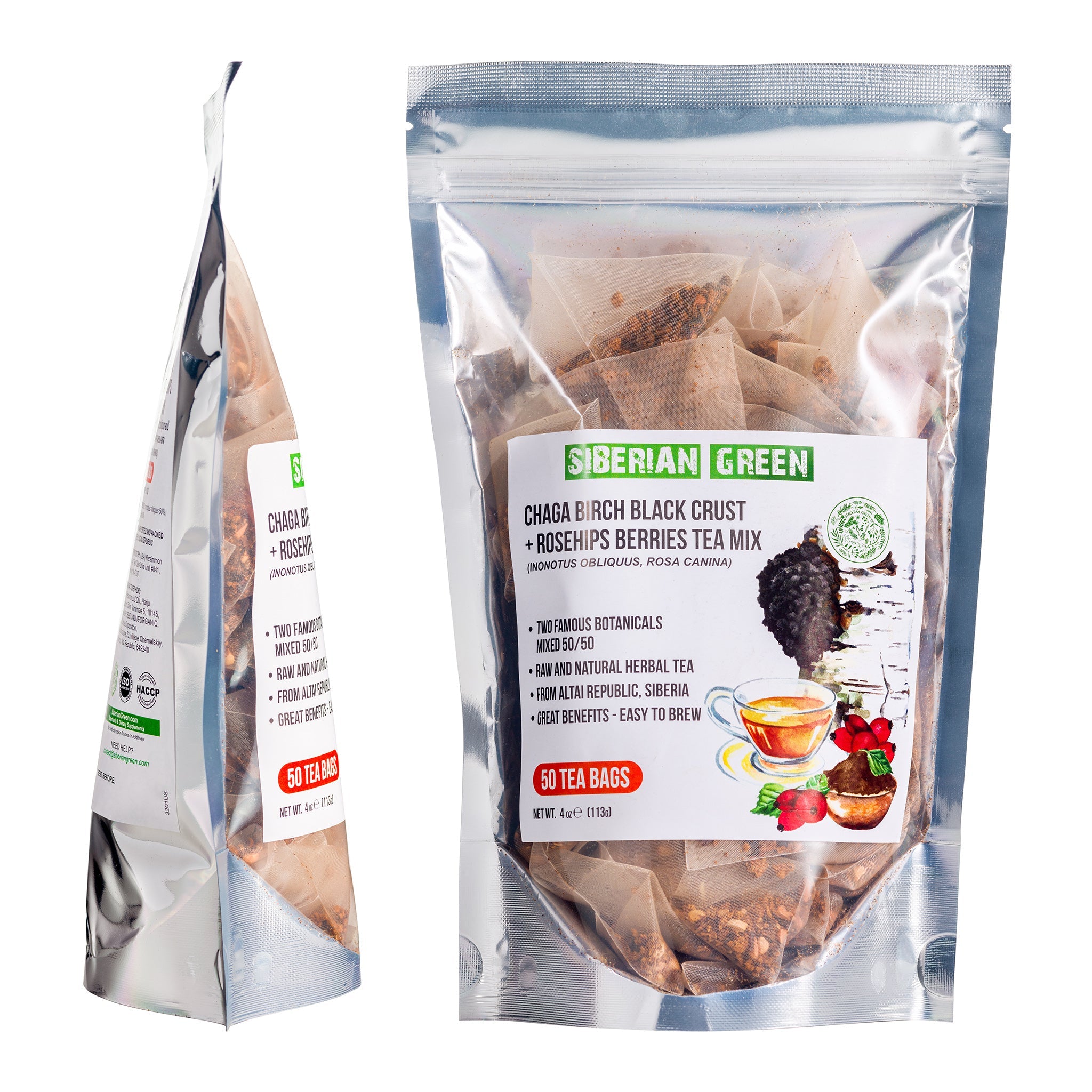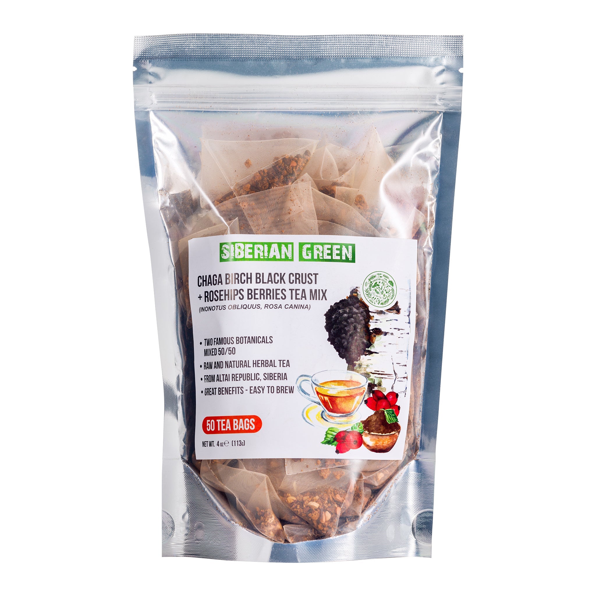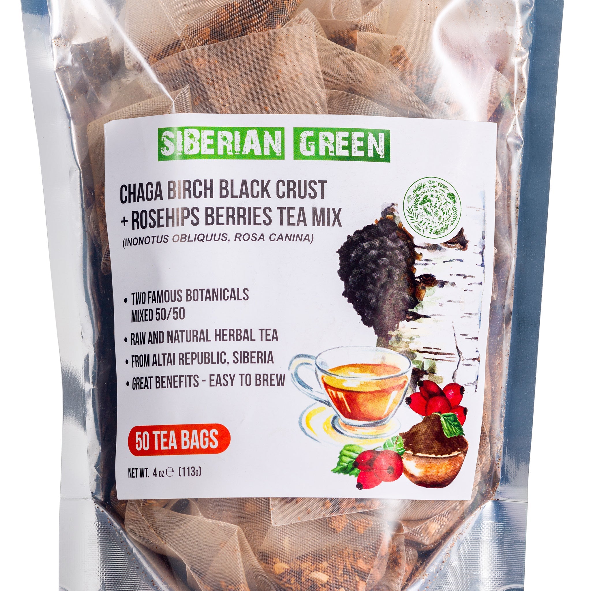 Siberian Green Chaga Tea with Rosehip Berries – 50 Tea Bags