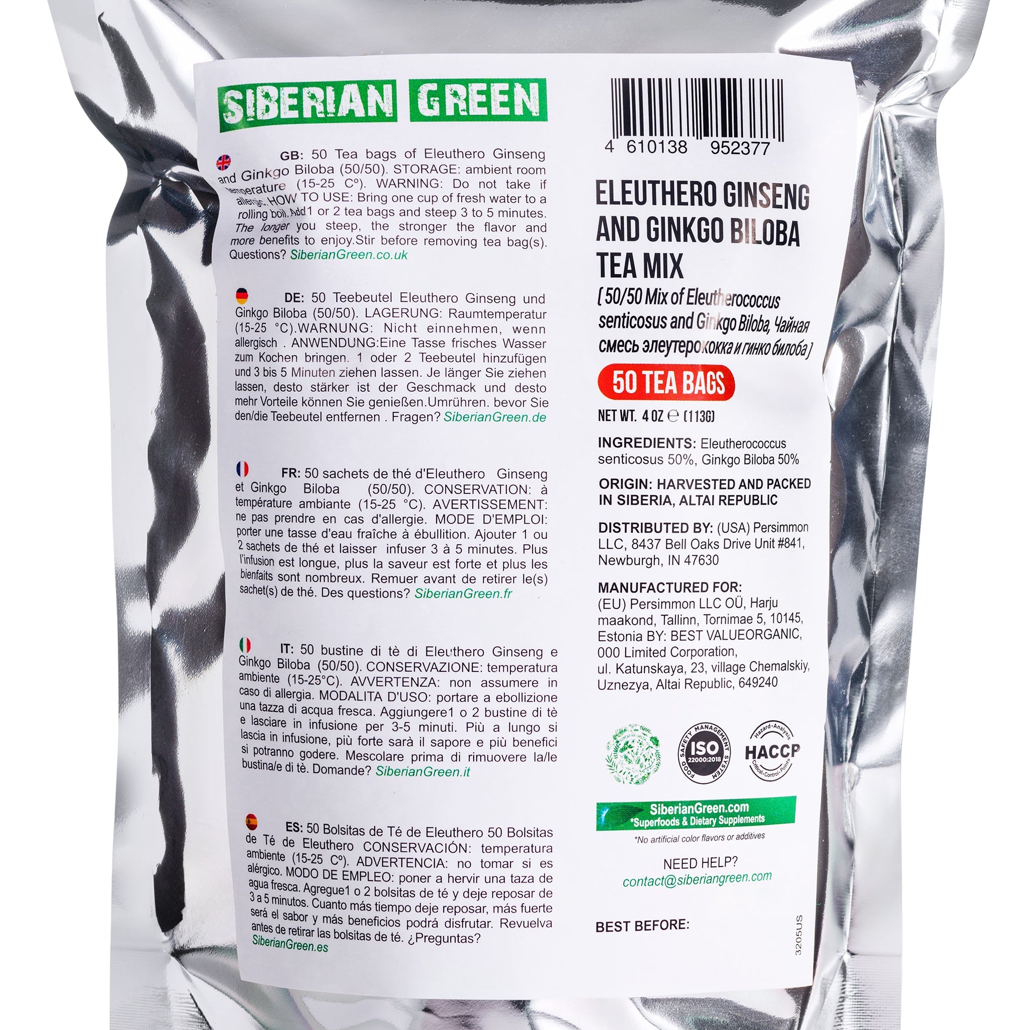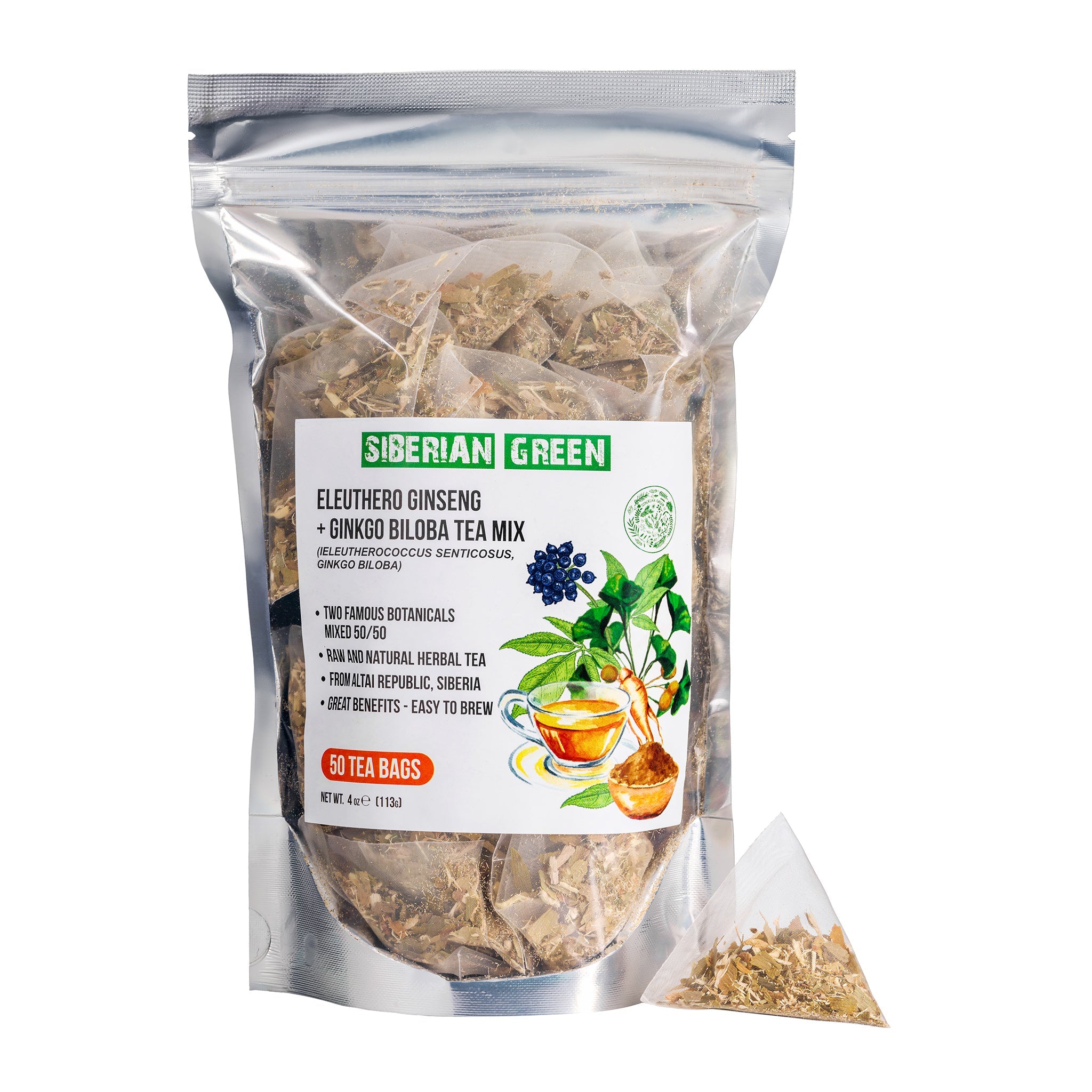 Experience the perfect harmony of nature with Siberian Green Ginkgo Biloba & Eleuthero Root Tea. This unique 50-50 herbal blend is sourced directly from the pristine Altai Republic, Siberia, combining the earthy richness of eleuthero root with the smooth, fragrant notes of ginkgo biloba. Each cup is pure, natural, and free from GMOs, artificial flavors, or additives, ensuring the highest quality in every sip.
