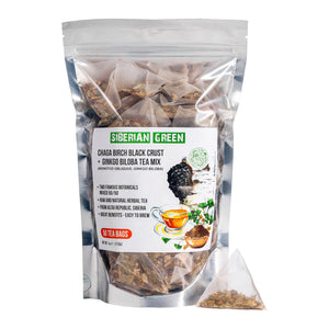 Chill out with Siberian Green Ginkgo Biloba Tea with Chaga for a blend that both tastes and feels good, being carefully crafted to create a wholesome tea infused with ginkgo biloba and Siberian chaga mushrooms. Each tea bag is free from GMO, fillers, and artificial additives while providing a wholesome nutrient rich experience. Sustainably sourced from the pristine Altai Republic, these bags will offer you the best of nature.