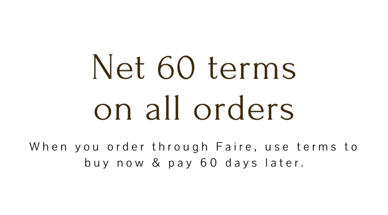 We’ve partnered with Faire to sell our wholesale products online. Join Faire today to shop our line and get 200 € off and 1 year of free shipping.*